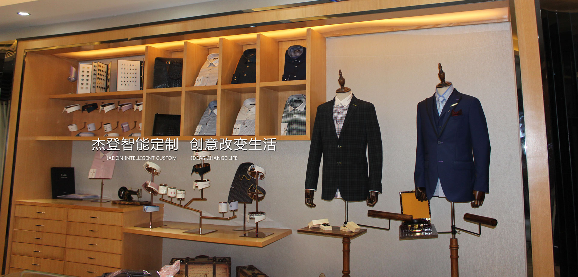JADON品牌定位于高端定制商務男裝,為商務精英男士展現更自信、成功的形象提供個性定制的服飾產品和優(yōu)質服務。